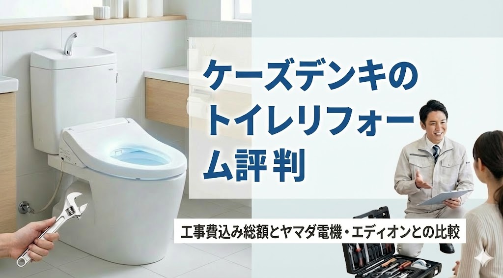 この記事では、実際の口コミをもとに、ケーズデンキのトイレリフォームの評判・工事費込み総額・ヤマダ電機やエディオンとの比較・失敗しない依頼方法を徹底解説します。「ヤマダ電機と比べてどうなのか?」「どこに頼むのが正解か?」という疑問にも答えていきます。